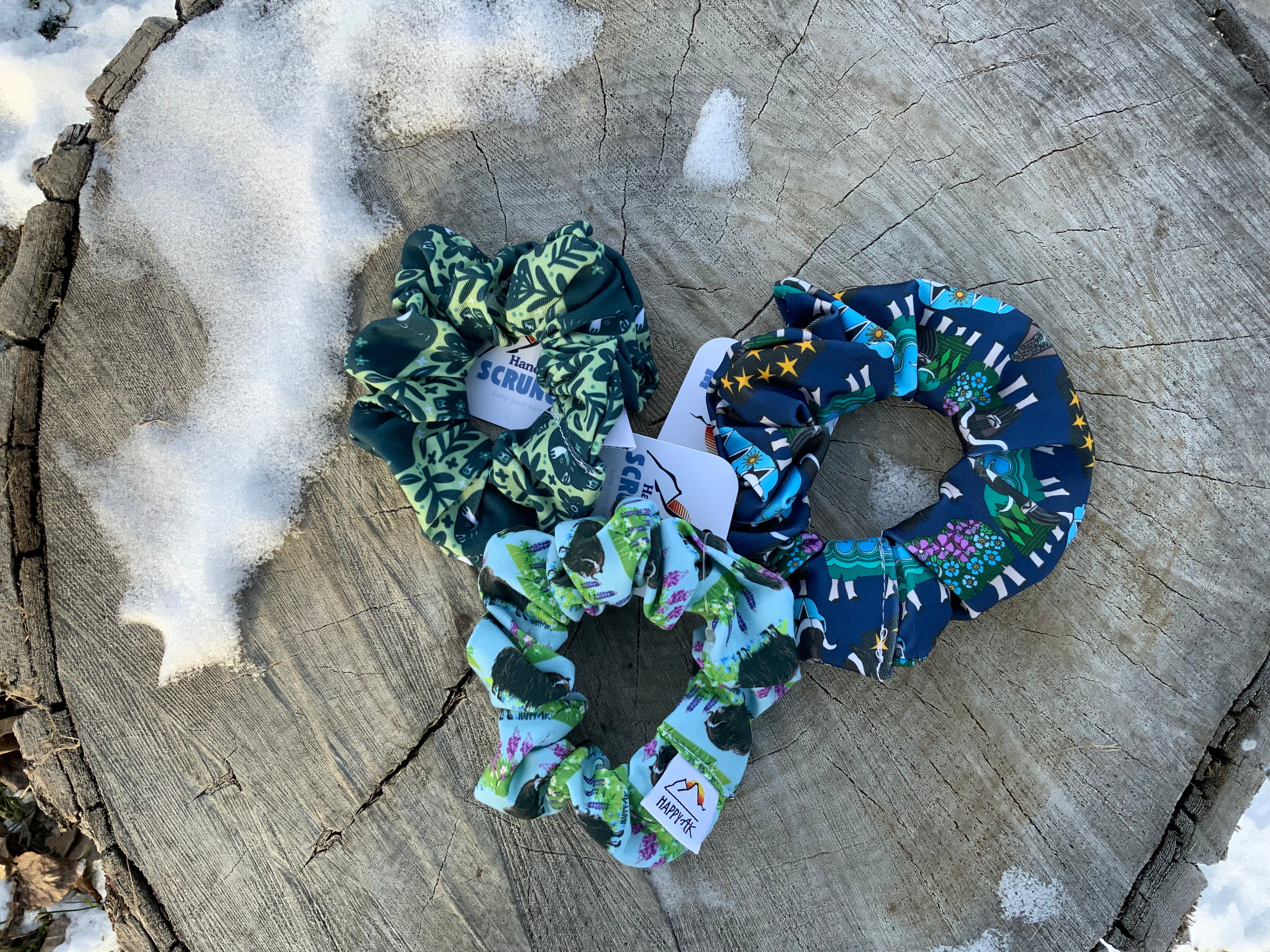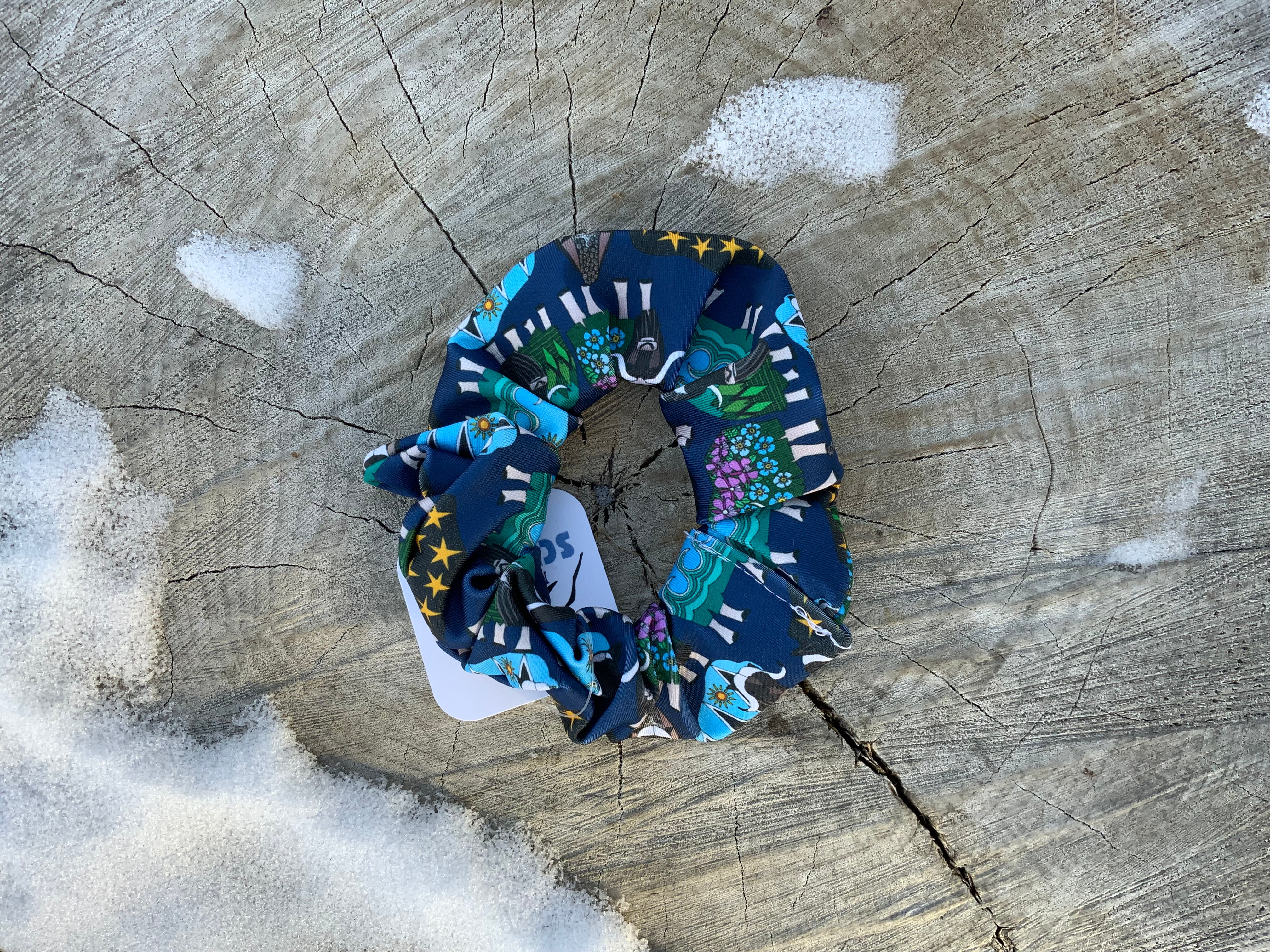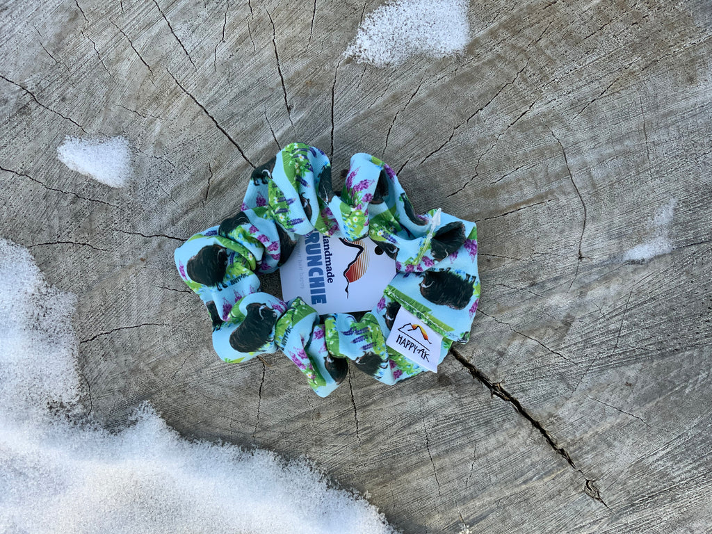 These scrunchies are a great way to show your love of musk ox! Whether you're hiking or just out running errands, they are an easy accessory to throw on as you zip out the door. All scrunchies are sewn and printed in Eagle River, Alaska by Headband Happy AK.