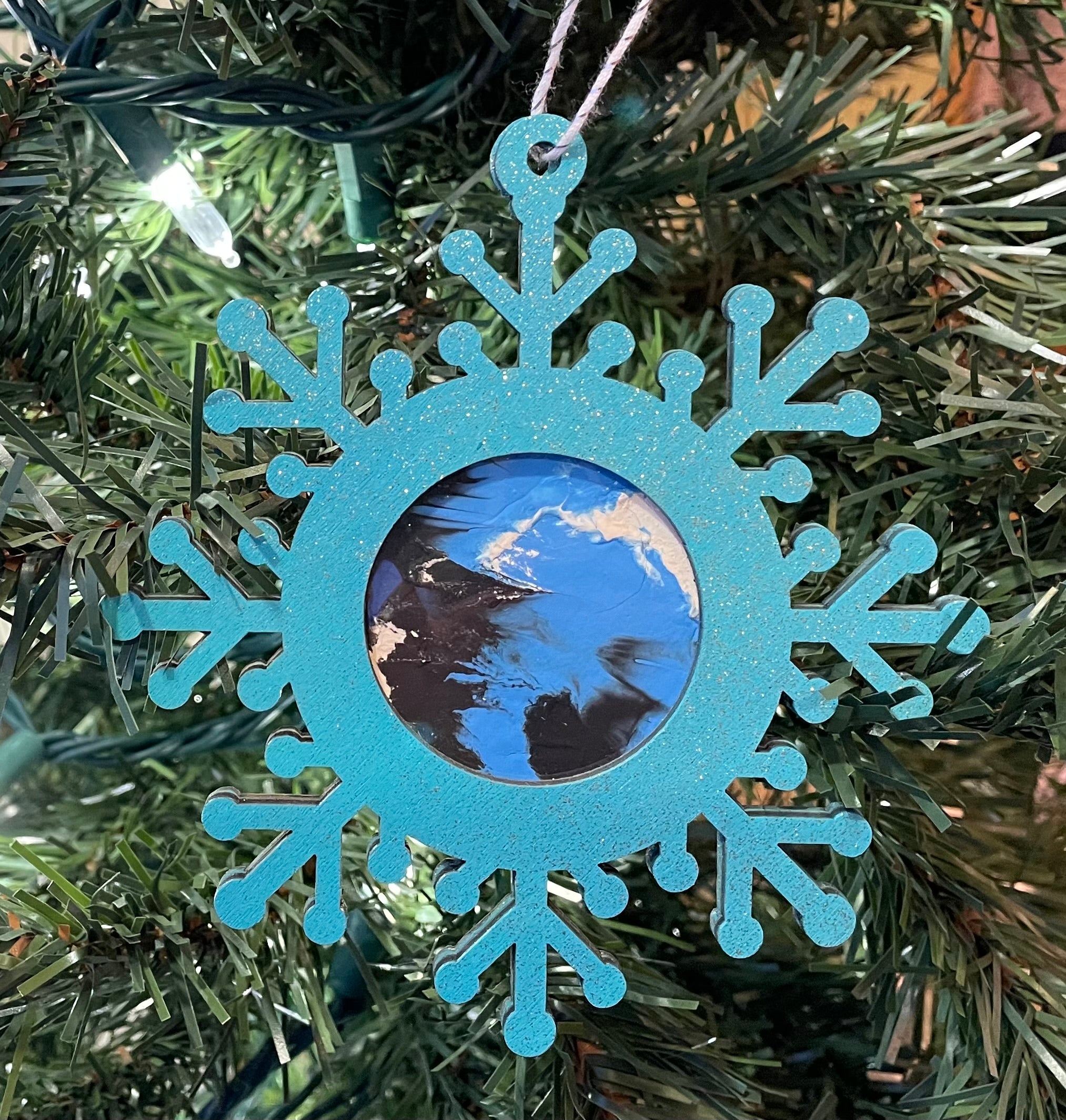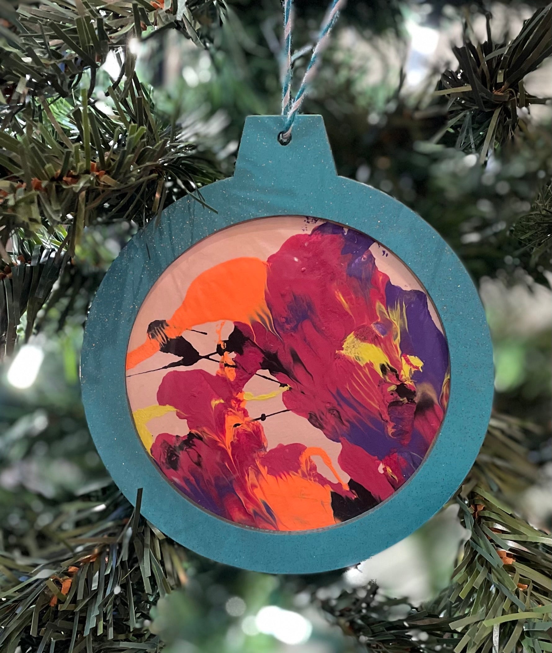 Get your hooves on our one-of-a-kind ornaments, hand-painted - or should I say snout painted - by our musk ox here at the farm!