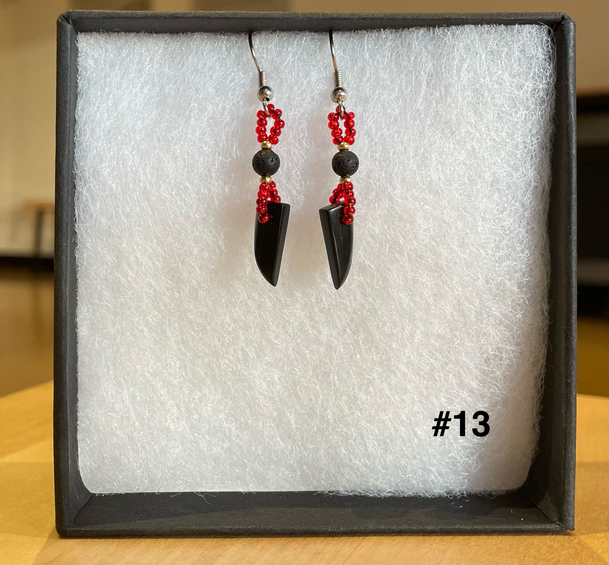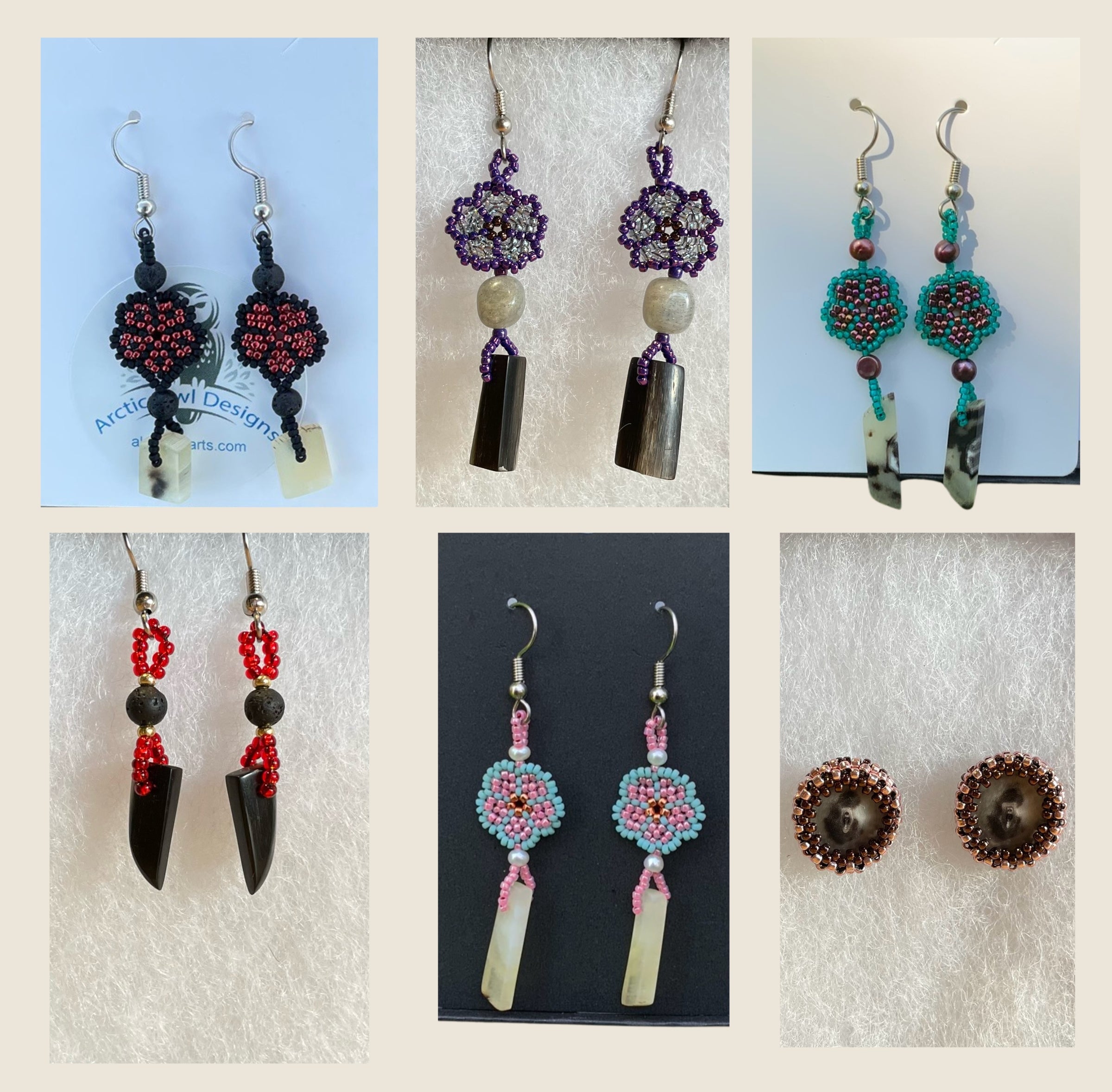 These amazing earrings are handmade by Arctic Owl Designs of Anchorage, Alaska. No two earrings are alike, and each is lovingly carved from the horn clippings from our little musk oxen (names noted in descriptions below).