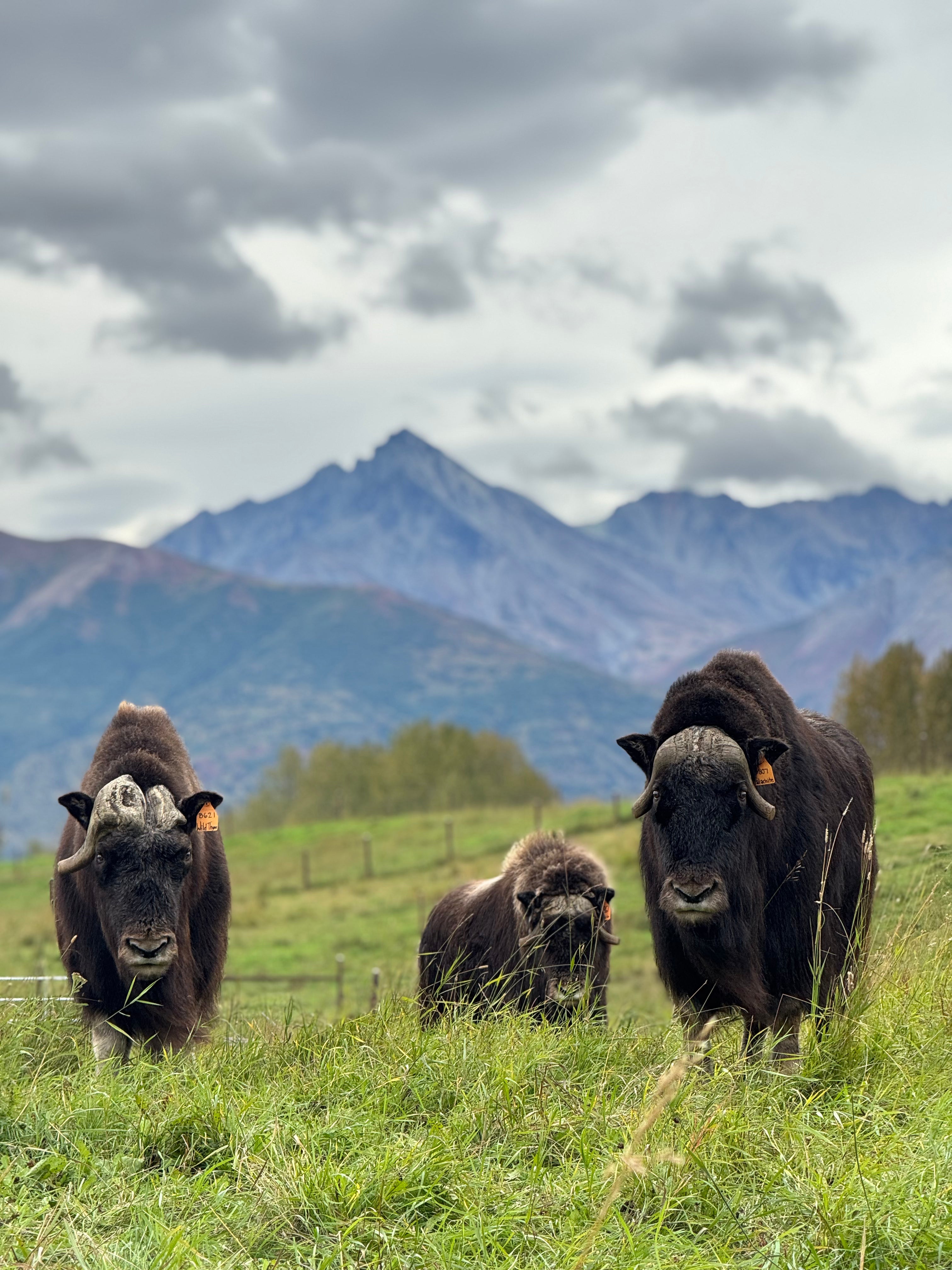 Our musk oxen produce not only qiviut, but also art! These abstract, original works of art are snoot- and hoof-made by members of our herd. They are definitely not starving artists- there were lots of extra treats for motivation to explore their creative side! These one-of-a-kind paintings are fun for the musk oxen and help support their care.